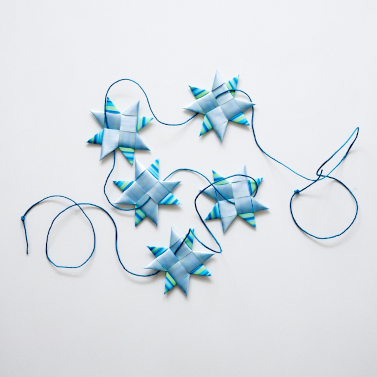 星が5つ並んだガーランド。窓辺などに横向きでデコレーションしたり、壁などのスペースに下げてデコレーションしたり。クリスマスだけにとどまらずオールシーズン楽しめるリボンです。子供部屋にもおすすめです。